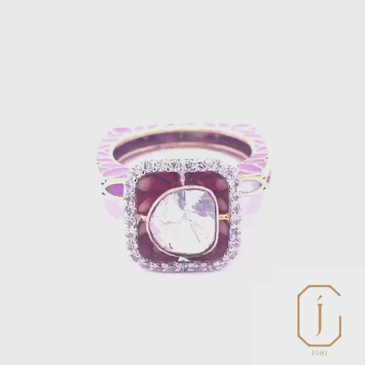 Apsara Polki & Pink Enamel Ring