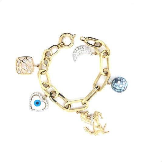 Shl Pearl Heart Multi Charms Chain Bracelet