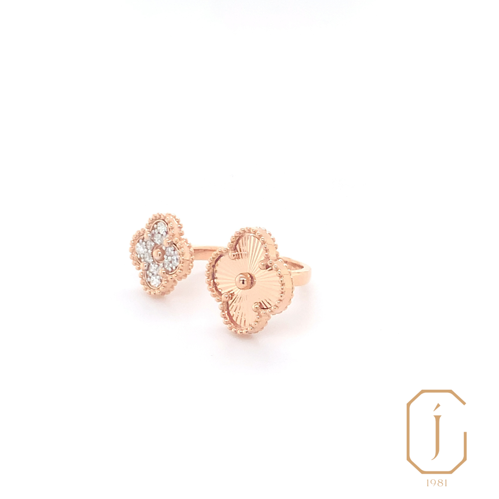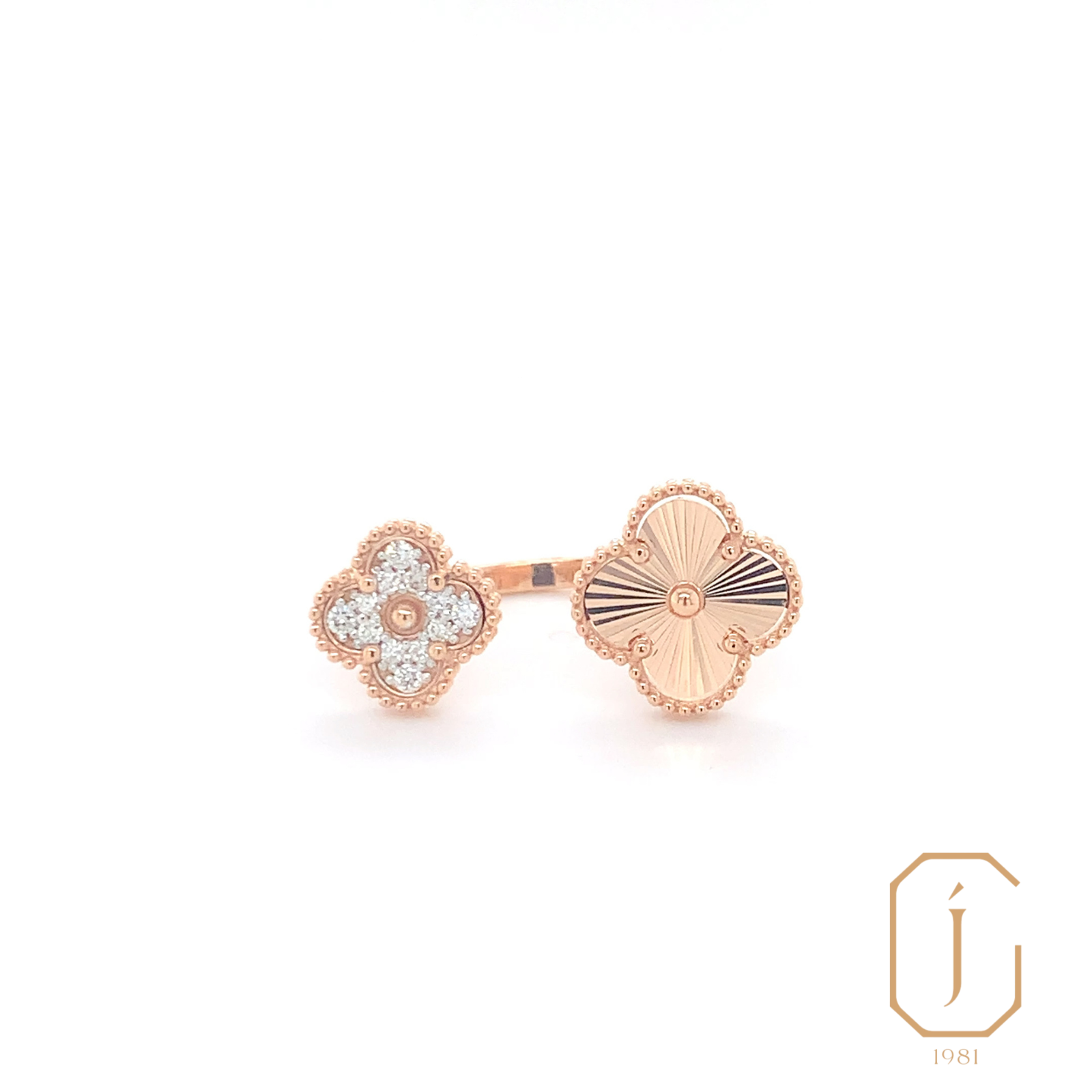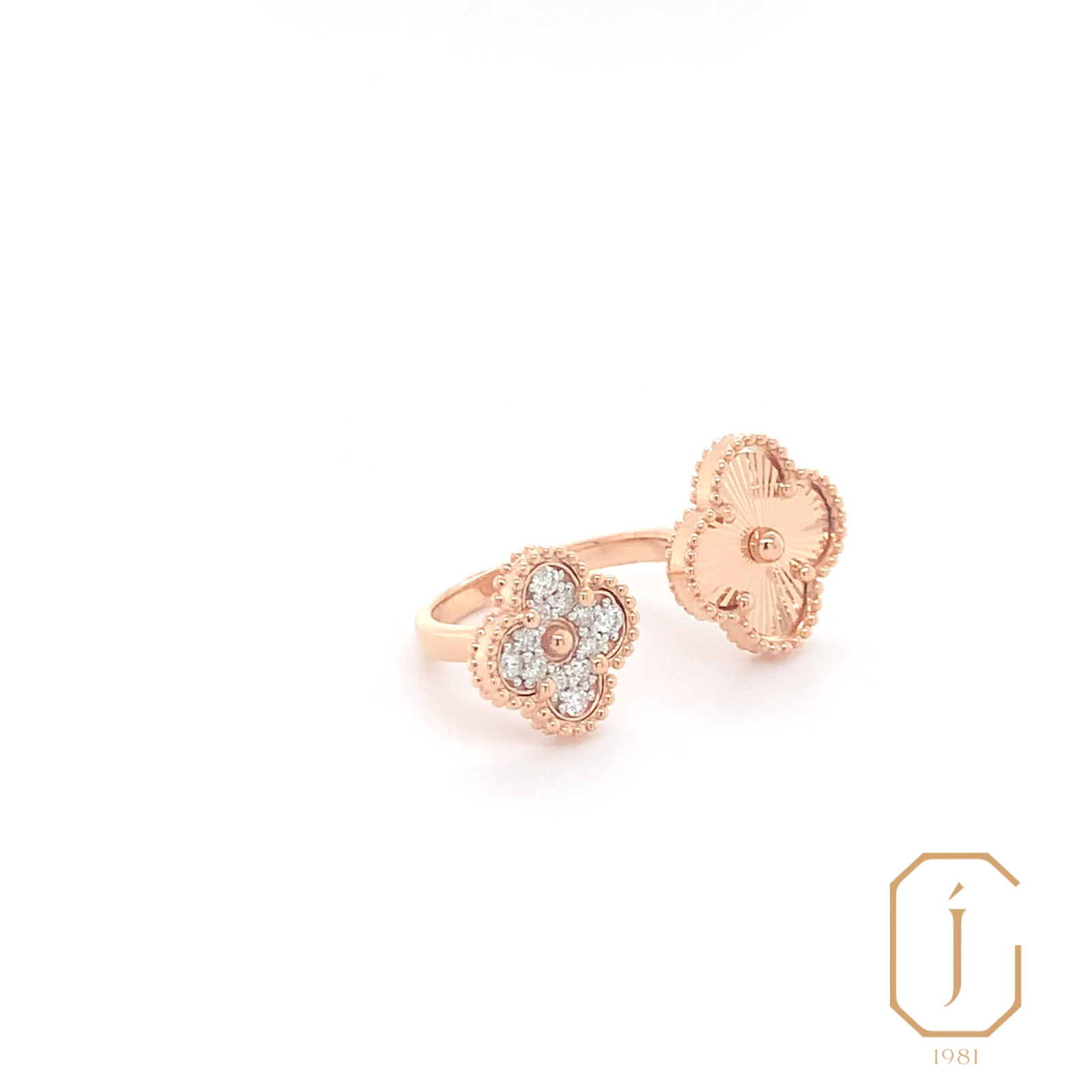 This enchanting Laura Bud ring features a delicate two-flower design, each bloom adorned with sparkling diamonds that enhance their graceful curves. Crafted from high-quality 18k gold, the ring’s floral motif is both elegant and whimsical, with the diamonds adding a touch of brilliance and sophistication. The ring’s refined design is perfect for making a subtle yet striking statement, blending classic charm with modern luxury.
