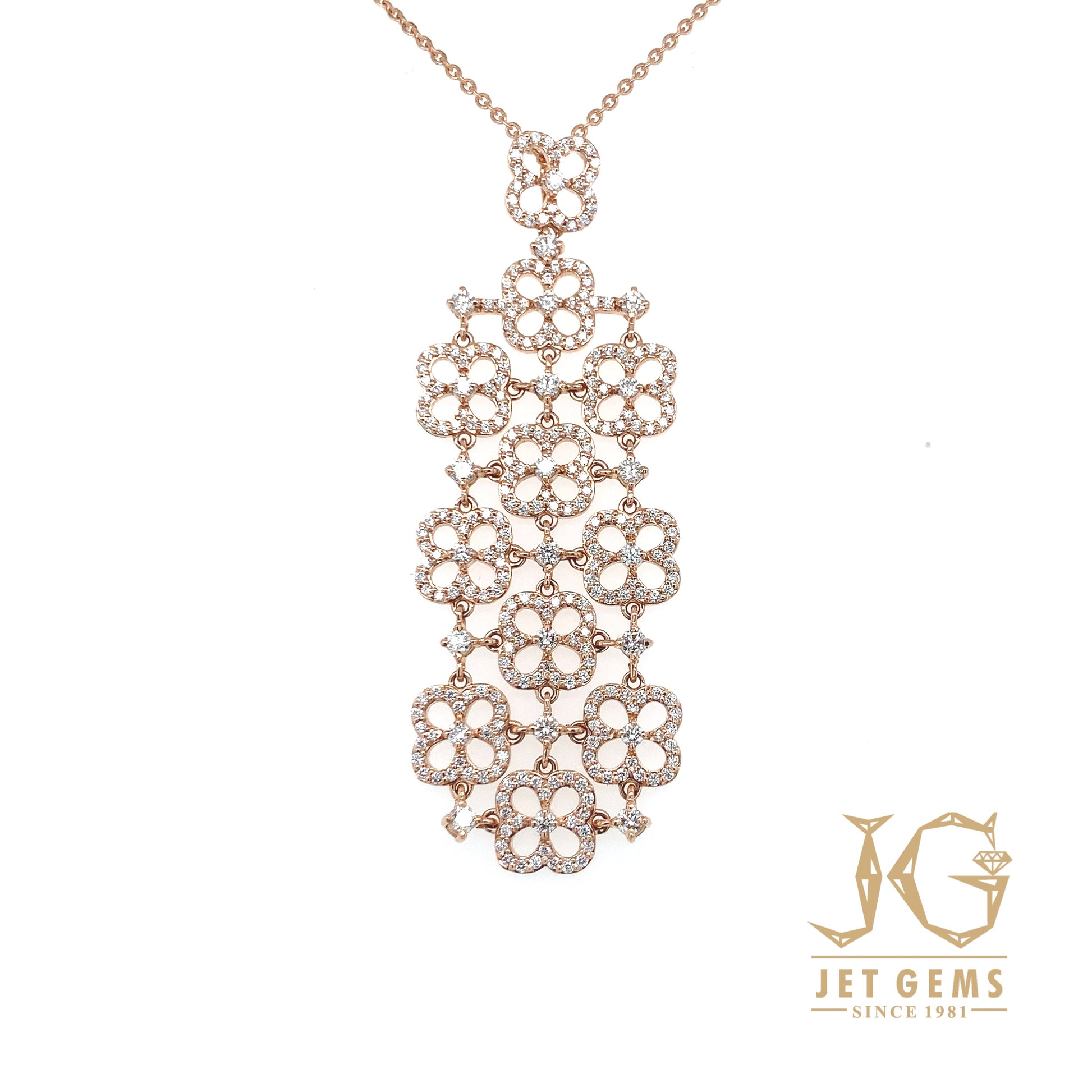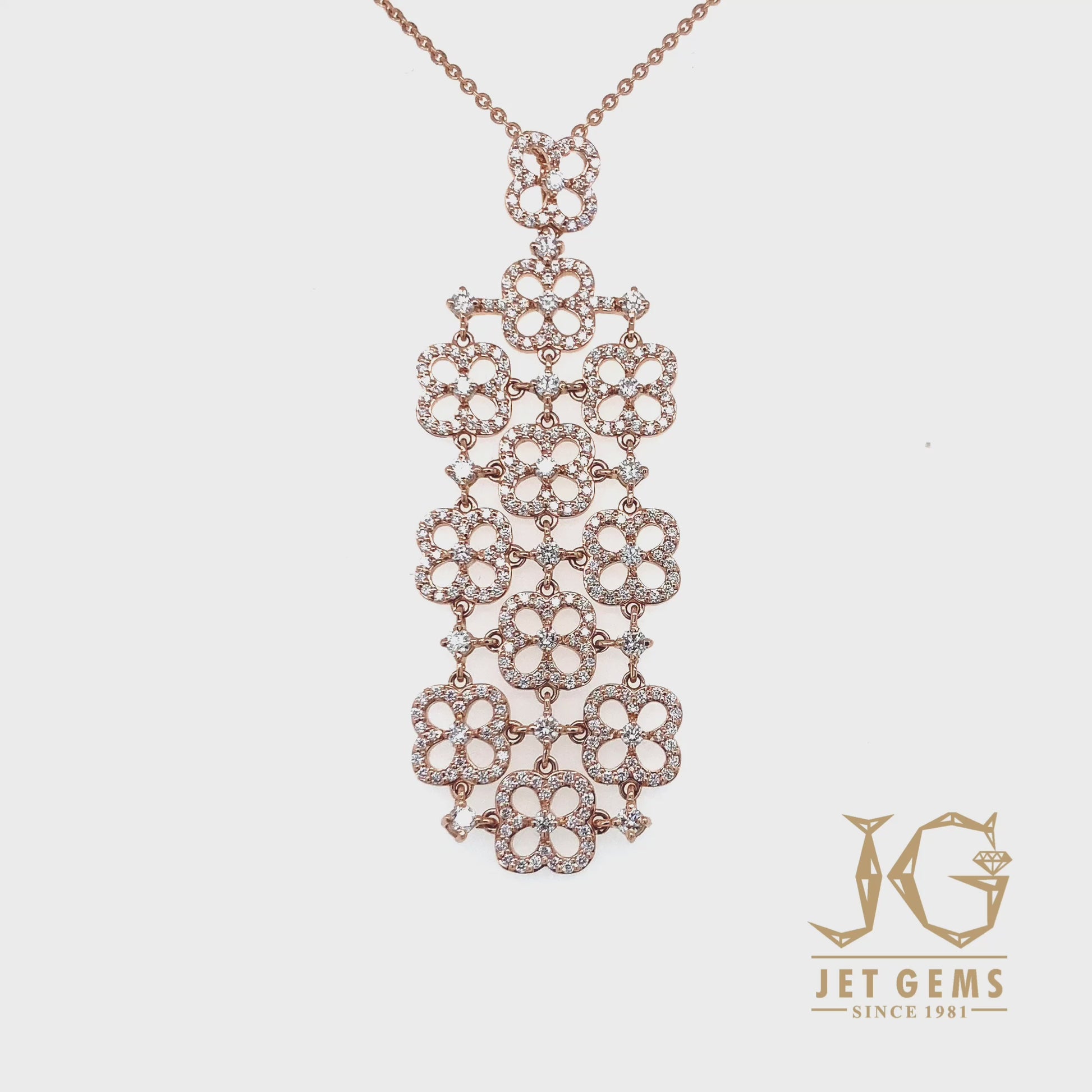 The Maria Blossom necklace is a stunning piece of jewelry that combines the brilliance of diamonds with the delicate beauty of floral motifs. Each petal and leaf is intricately crafted with sparkling diamonds, creating a captivating representation of nature's elegance. This necklace is a perfect choice for special occasions where a touch of glamour and femininity is desired.