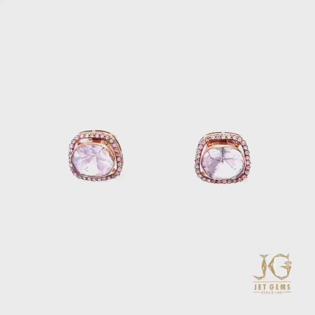 Classic pair of studs with a polki encrusted design. The uncut diamond at the centre creates an elegant effect as the round diamonds surrounding it provide a bewitching look. It could be styled with a traditional as well as a modern attire as it provides an all-embracing look.